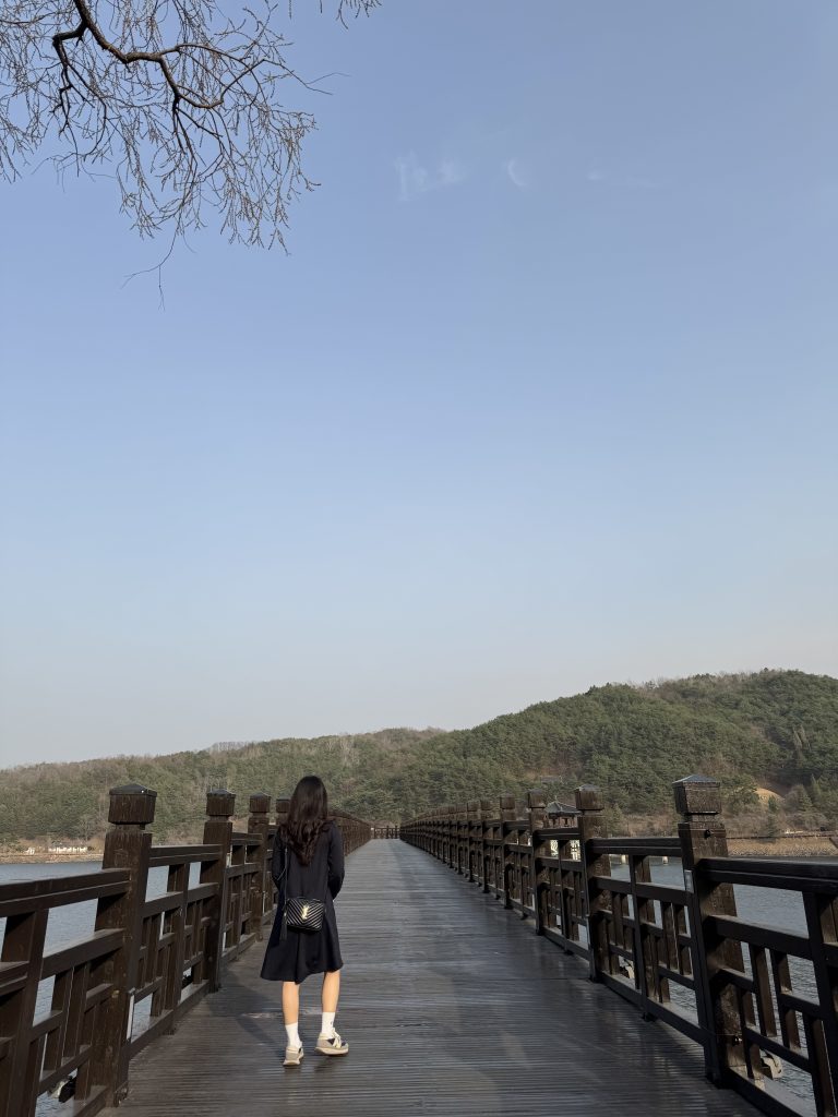 月映橋は2003年に造られ、韓国で最も長い木製遊歩道橋。