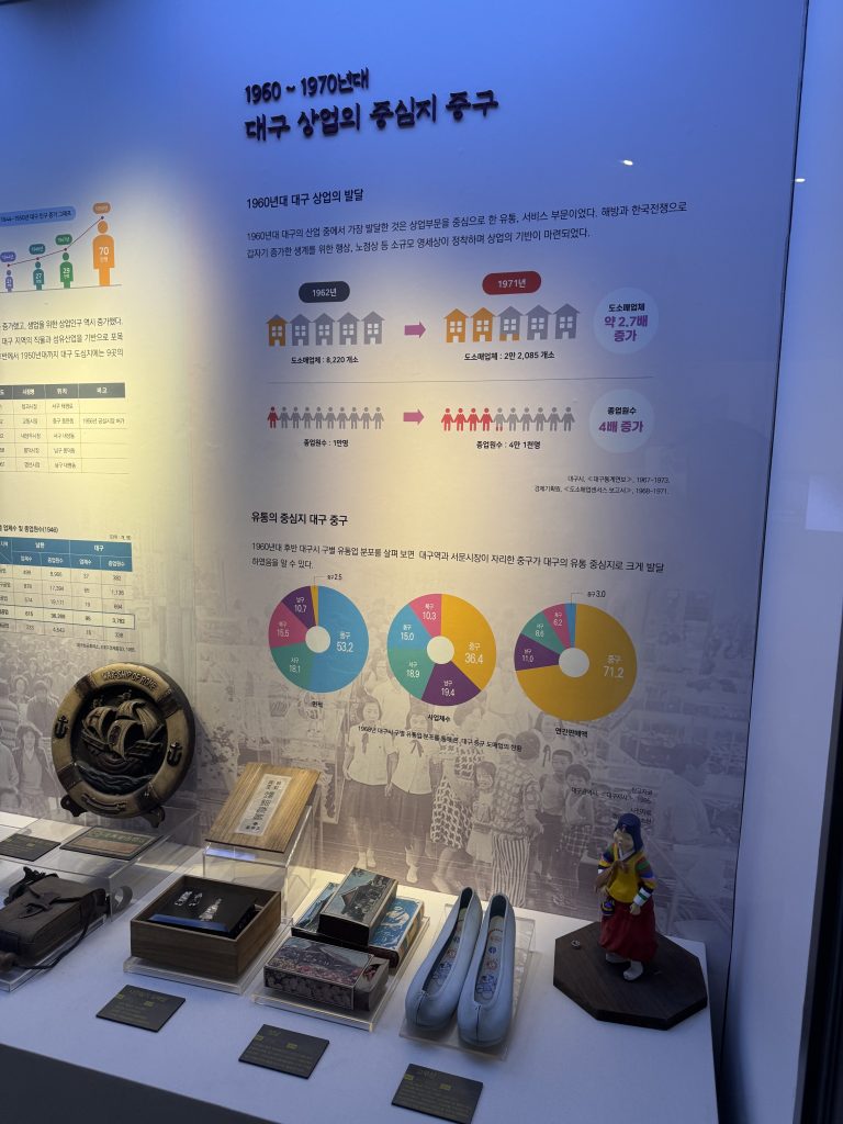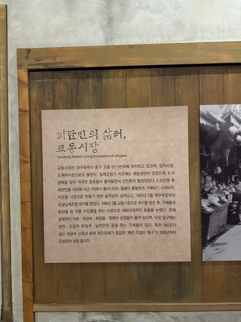 地域ごとに栄えた産業や文化が異なるのも、現在の大邱の街並みにそのままつながっているんだなぁと実感。当時の市場の様子がリアルに再現されていて、タイムスリップした気分でした。